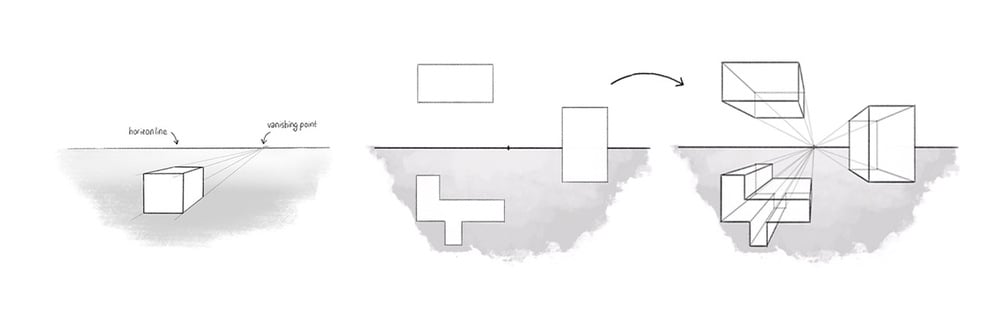 Drawing boxes in one-point perspective